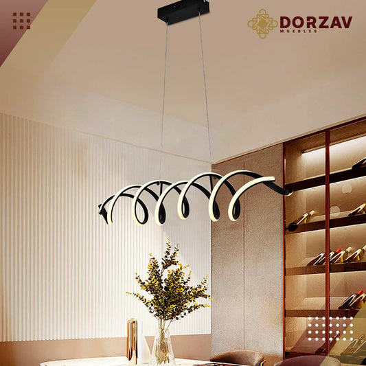 Candil Colgante Minimalista CLASSCL00186 – Diseño Lineal Ondulado LED en Negro Mate