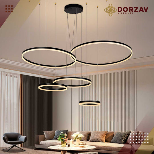 Candil Colgante Minimalista CLASSCL00195 – Aros LED Suspendidos en Negro