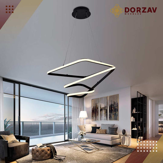 Candil Colgante Moderno CLASSCL00193 – Diseño Lineal y Circular LED en Negro Mate