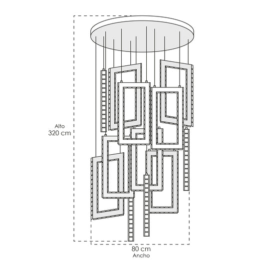 Candil Decorativo 2CLAT78 – Aros Geométricos LED en Cromo con Cristal Ámbar para Doble Altura