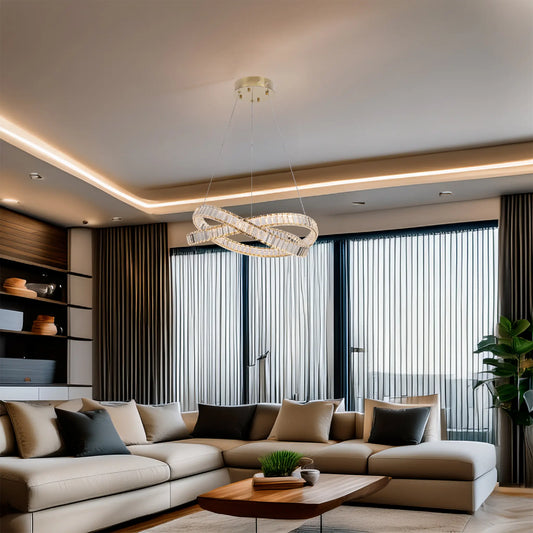 Candil Colgante Moderno CLASSCL00097 – Doble Aro de Cristal LED Dorado