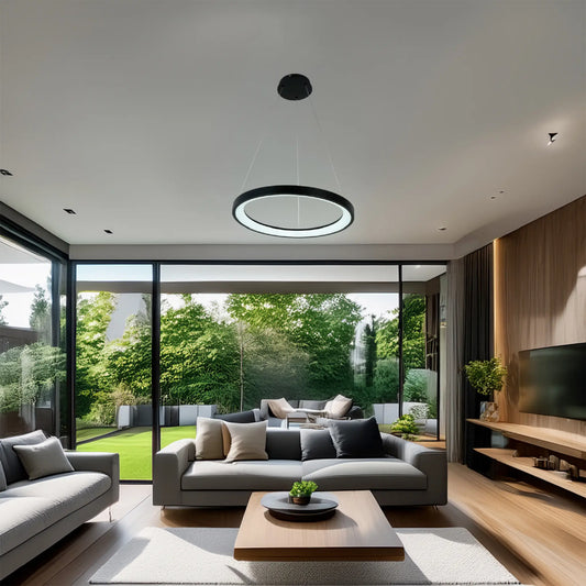 Candil Colgante Minimalista CLASSCL00203 – Aro LED Suspendido en Negro