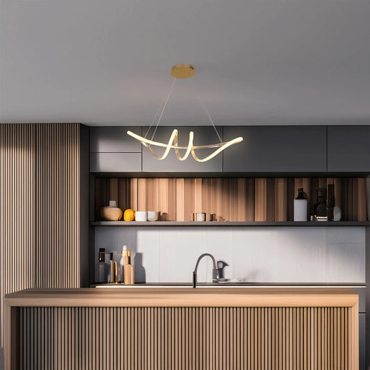 Candil Colgante Minimalista CLASSCL00205 – Diseño Ondulado LED en Dorado