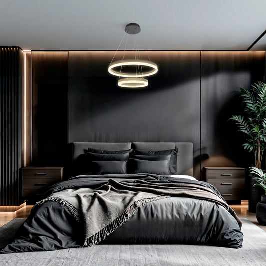Candil Colgante Minimalista CLASSCL00208 – Doble Aro Circular LED en Acabado Negro
