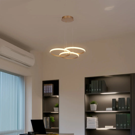 Candil Colgante Minimalista CLASSCL00196 – Aros LED Suspendidos en Acabado Dorado