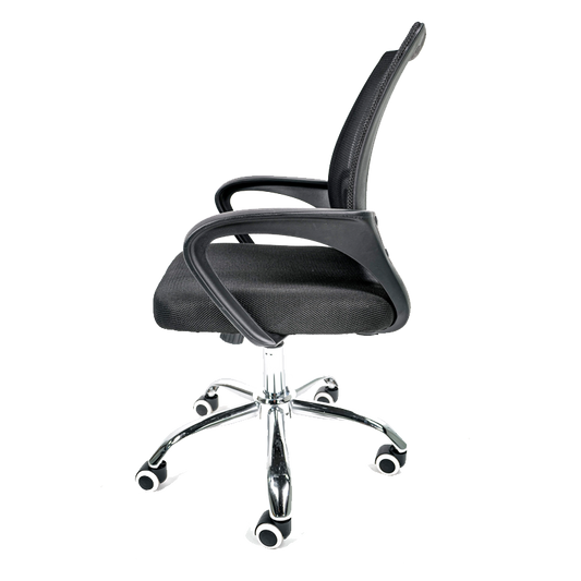 Silla Operativa E102 Mesh Negra – Ergonómica con Base Cromada y Respaldo Transpirable