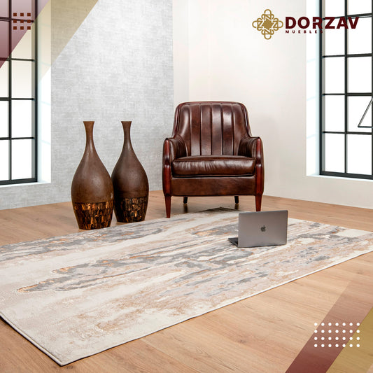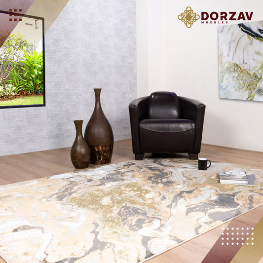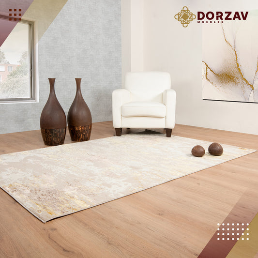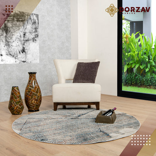 Tapete Decorativo Redondo Veleka U6038 – Color Crema / Oro / Gris