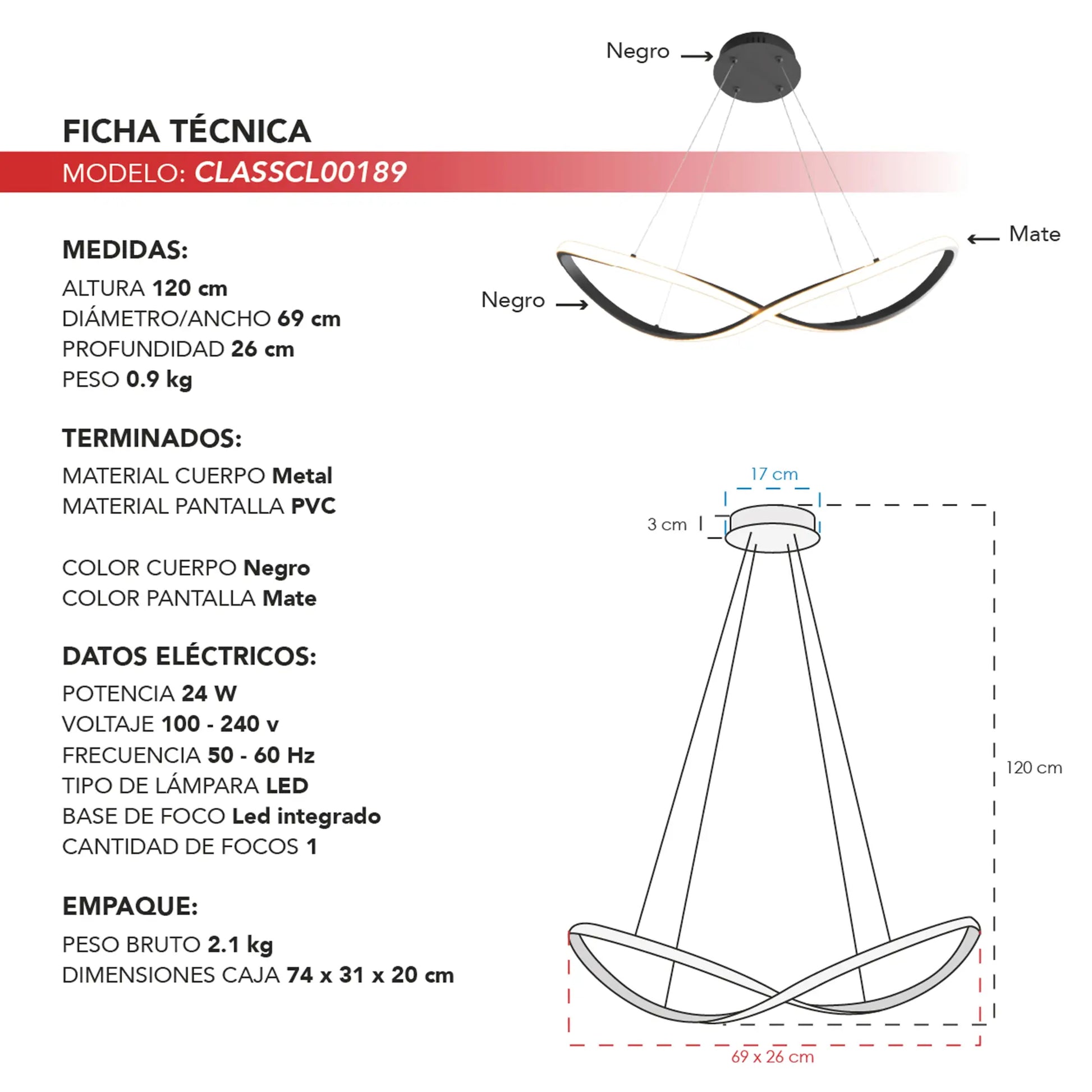 El candil colgante CLASSCL00189 es una luminaria de diseño moderno y minimalista que destaca por su silueta fluida y orgánica, compuesta por líneas suaves que se entrelazan de forma equilibrada. Su diseño continuo crea una sensación de movimiento sutil, convirtiendo la iluminación en un elemento visual ligero, elegante y perfectamente integrado al espacio.