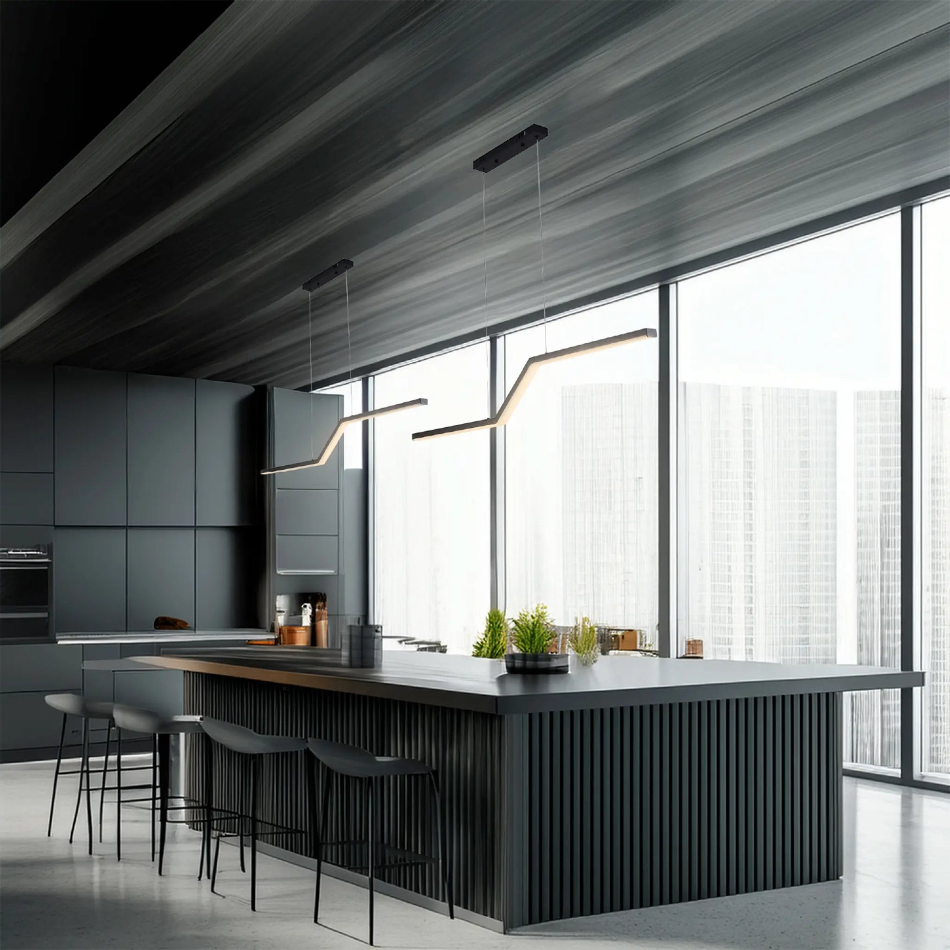 El acabado negro mate aporta profundidad visual y sofisticación, integrándose con facilidad en cocinas modernas, interiores industriales o espacios minimalistas. Su formato horizontal lo hace ideal para zonas donde se busca iluminación funcional con una presencia visual controlada y elegante.