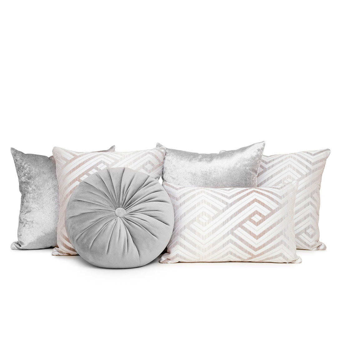 El set incluye un total de 4 cojines cuadrados de 45 x 45 cm, perfectos para un aspecto uniforme y acogedor. Además, se añade un cojín rectangular de 33 x 50 cm, ideal para añadir dimensión a tu espacio. Completando el conjunto, se encuentra un cojín circular de 34 cm de diámetro, que agrega un elemento inesperado y distintivo a la decoración de tu hogar. Con esta variedad de tamaños y formas, podrás crear una disposición armoniosa que refleje tu estilo personal.