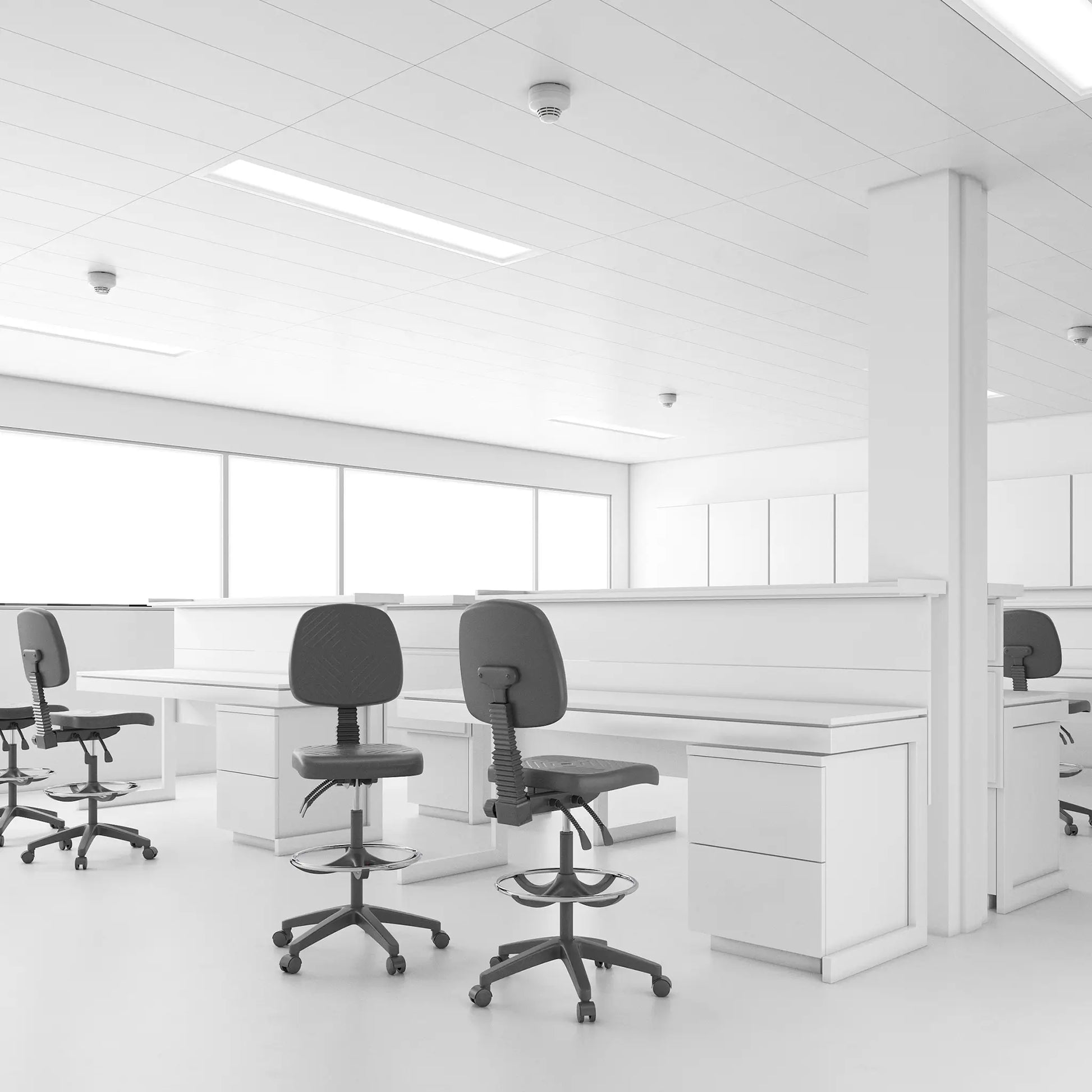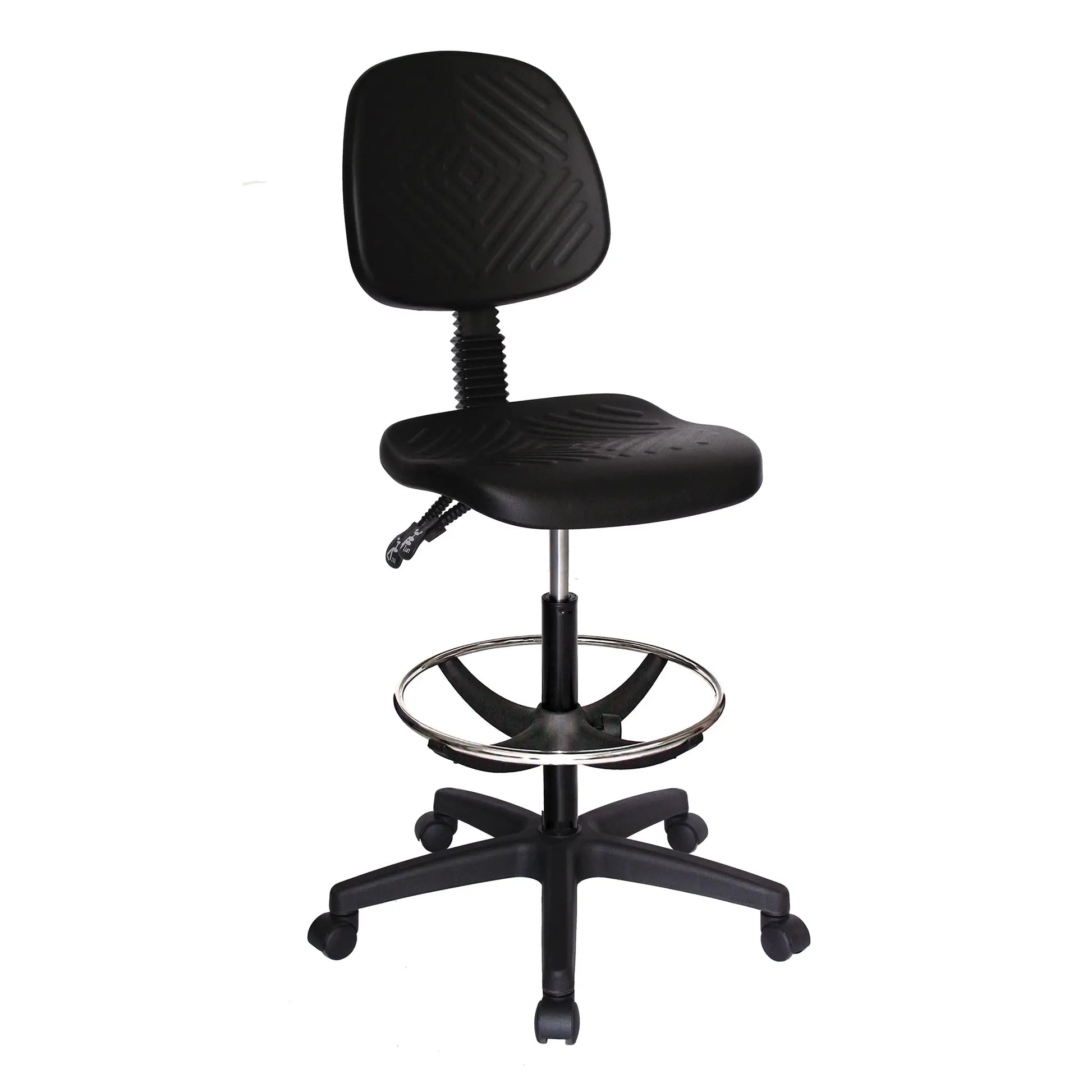 La OHI-46 Aro Cromado está diseñada para áreas de trabajo industriales donde se necesita operar en estaciones elevadas. Integra un aro cromado tubular de gran resistencia y un asiento de poliuretano compacto que soporta uso continuo en líneas de producción y laboratorios. Su mecanismo de contacto permanente mantiene soporte lumbar constante, mientras que su base Heavy Duty ofrece estabilidad superior.