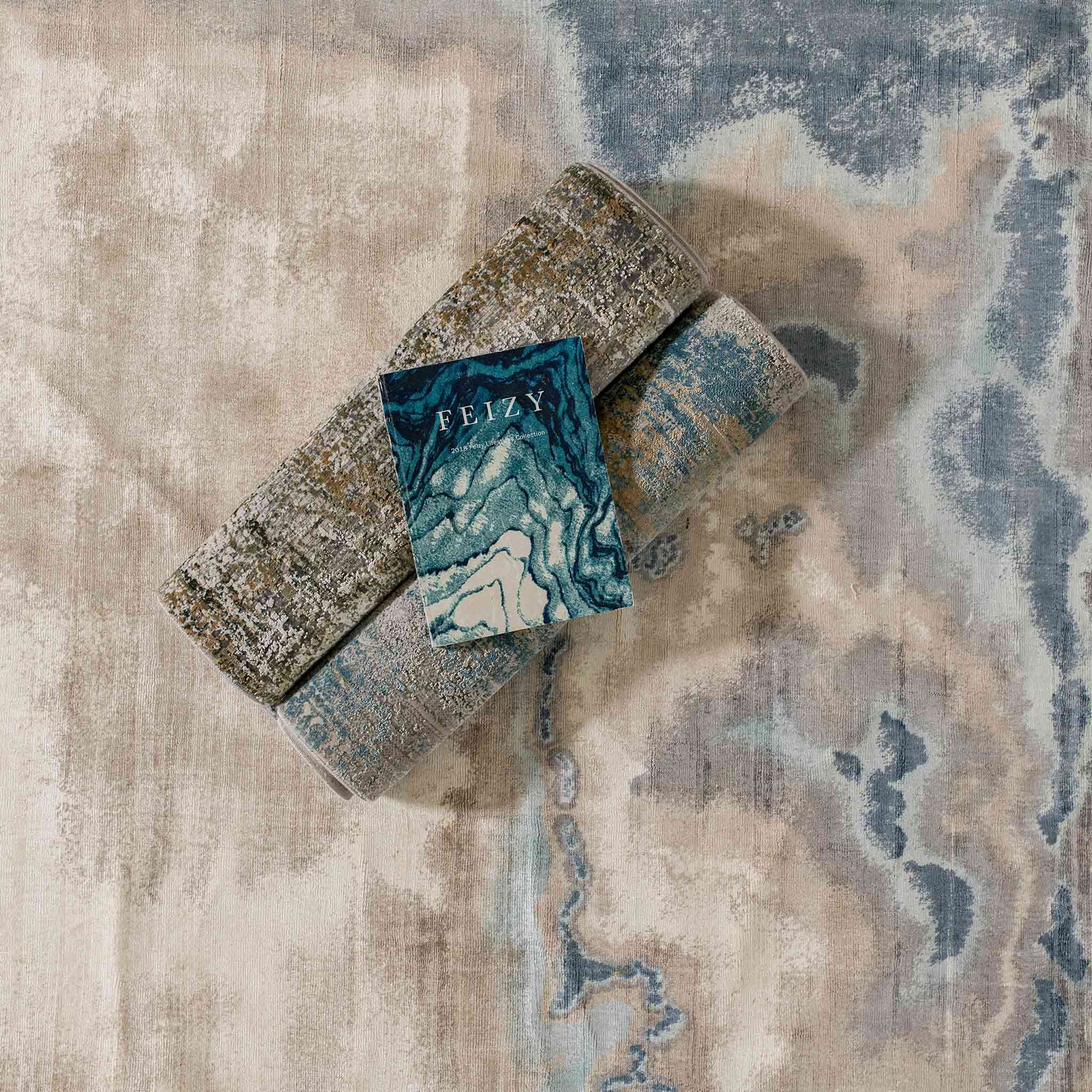 El Tapete Feizy Kova 127N destaca por su diseño abstracto tipo acuarela, con transiciones suaves en tonos Azul, Gris y Beige que evocan texturas de nubes o mármol difuminado. Su composición en viscosa y algodón aporta un brillo delicado y una suavidad premium, convirtiéndolo en una pieza elegante y perfecta para salas contemporáneas y recámaras tipo hotel boutique.