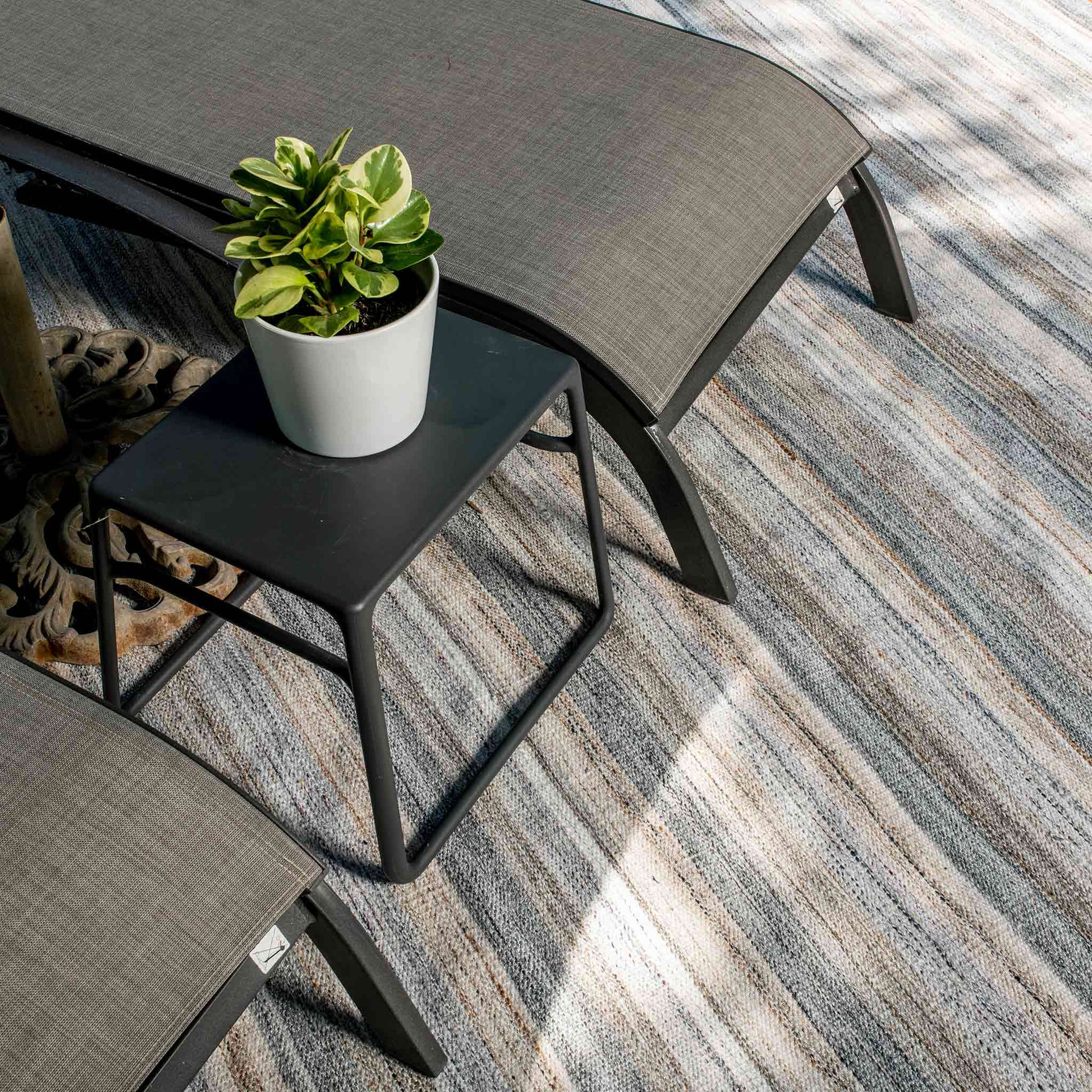 Fabricado en poliéster de alta resistencia, este tapete está diseñado para uso interior y exterior, pudiendo estar expuesto al sol y la lluvia. Es ideal para terrazas, áreas de alberca, patios, balcones o casas de playa, manteniendo su estructura y apariencia con el uso continuo.