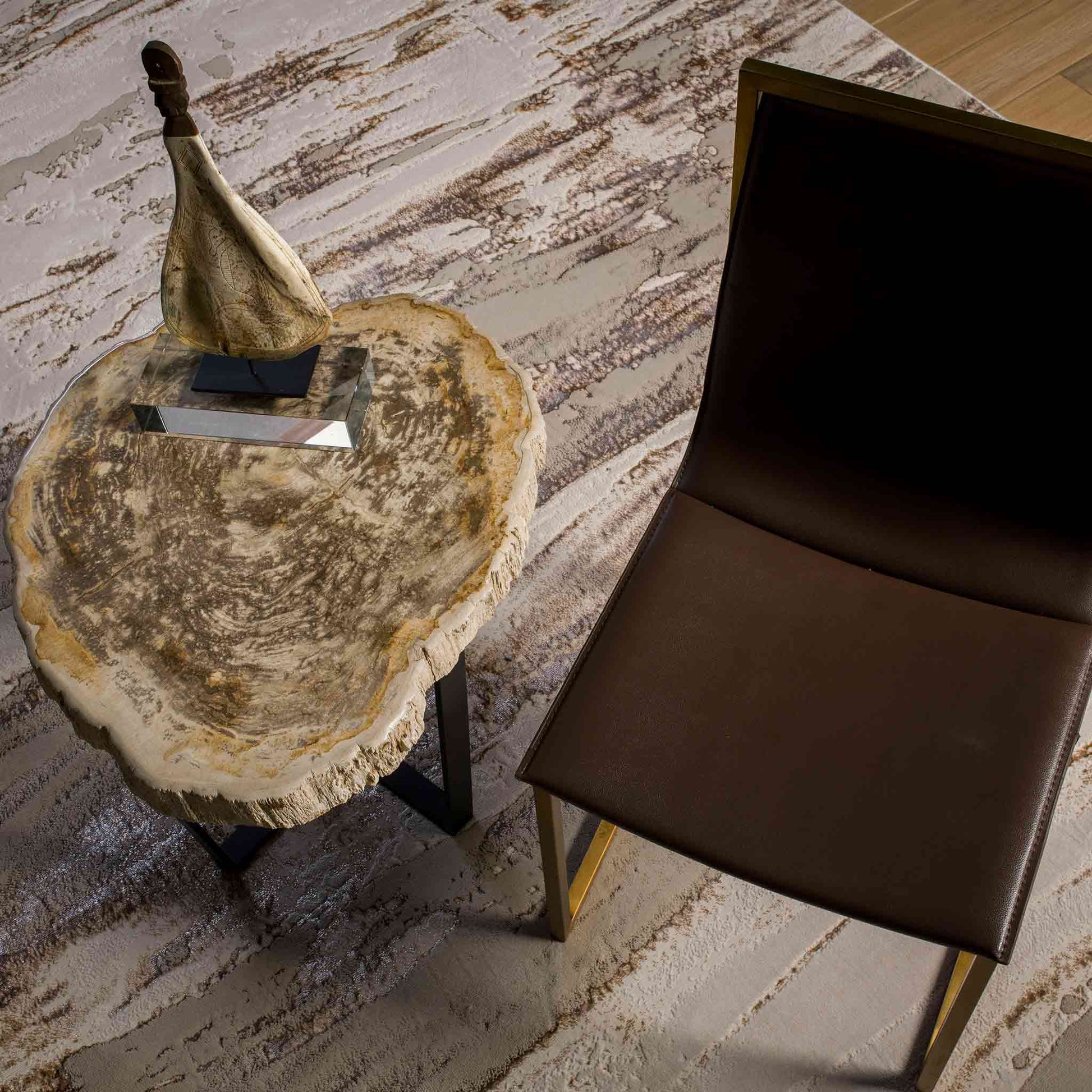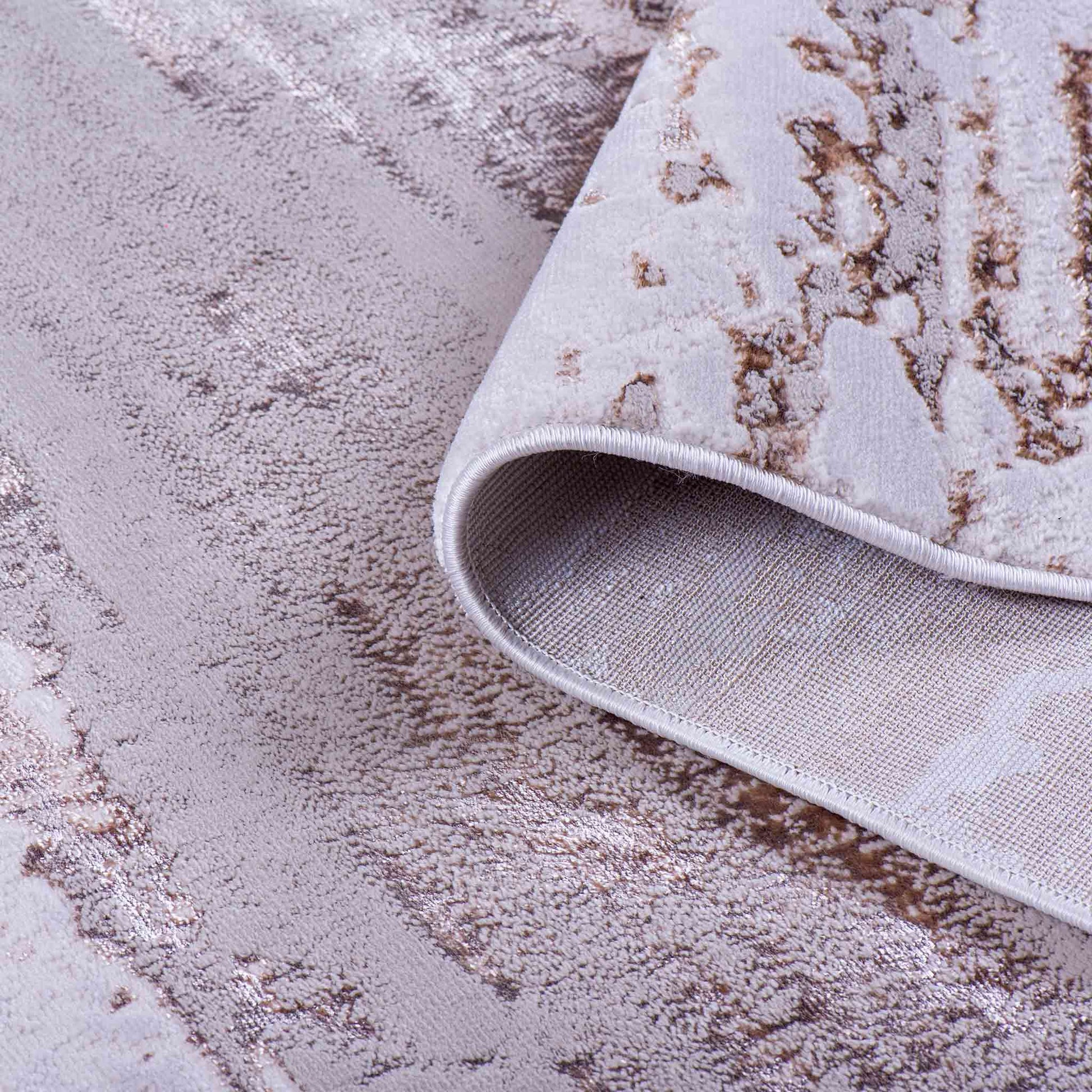 El Tapete Feizy Nela 1018C presenta un diseño abstracto tipo mármol líquido con vetas suaves en tonos dorado, crema y gris claro. Su efecto ligeramente metalizado —gracias al hilo de poliéster— crea un acabado elegante que refleja la luz de forma sutil, elevando cualquier espacio con un brillo sofisticado.