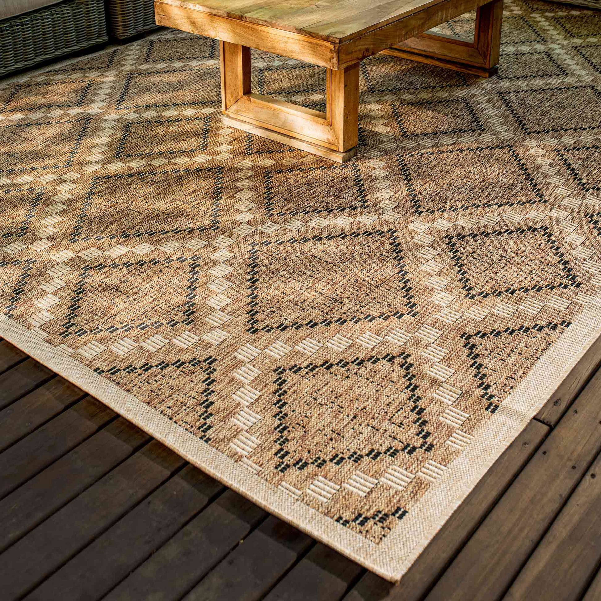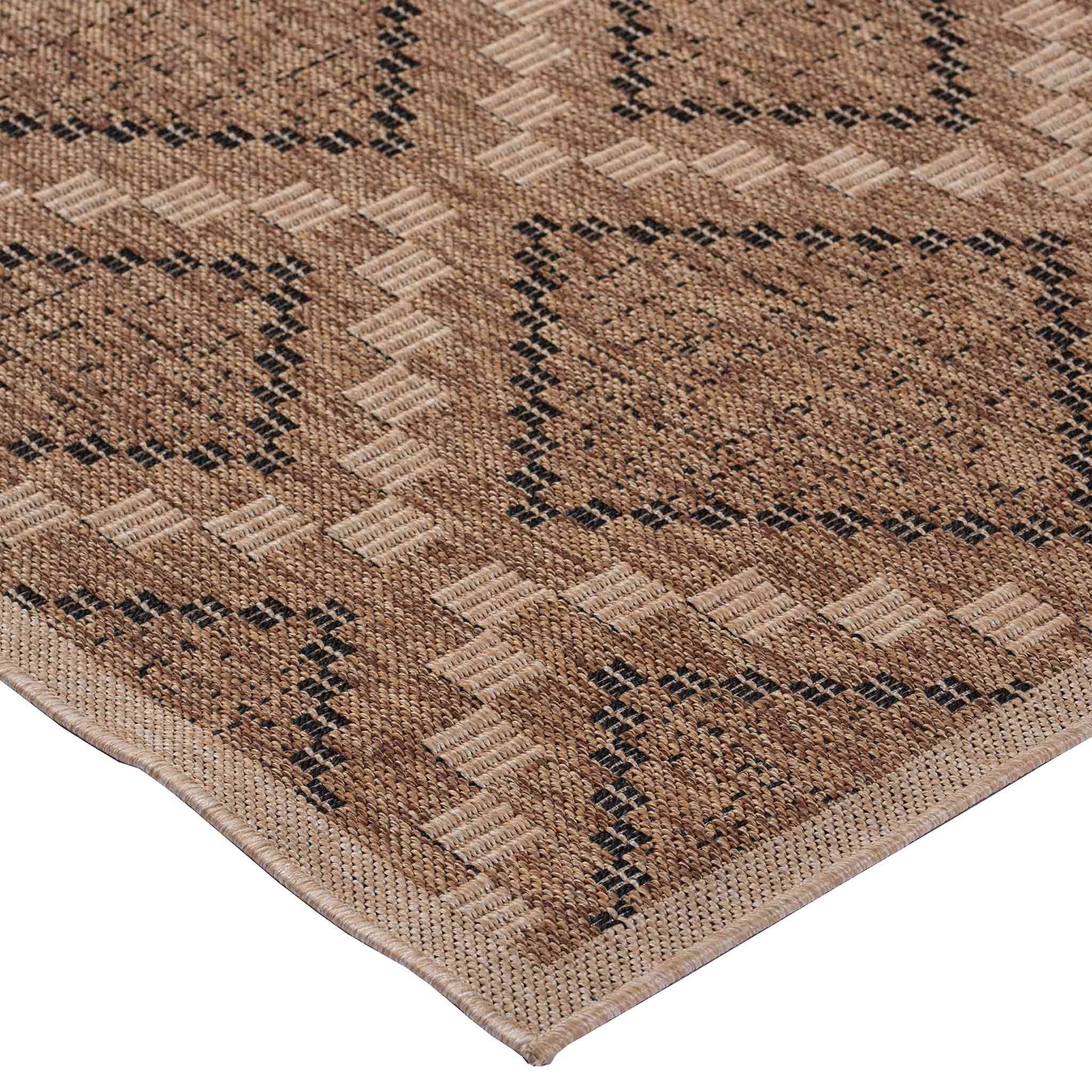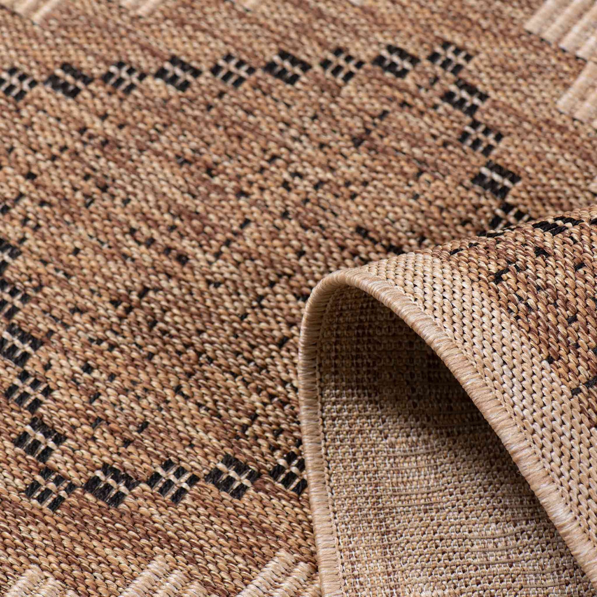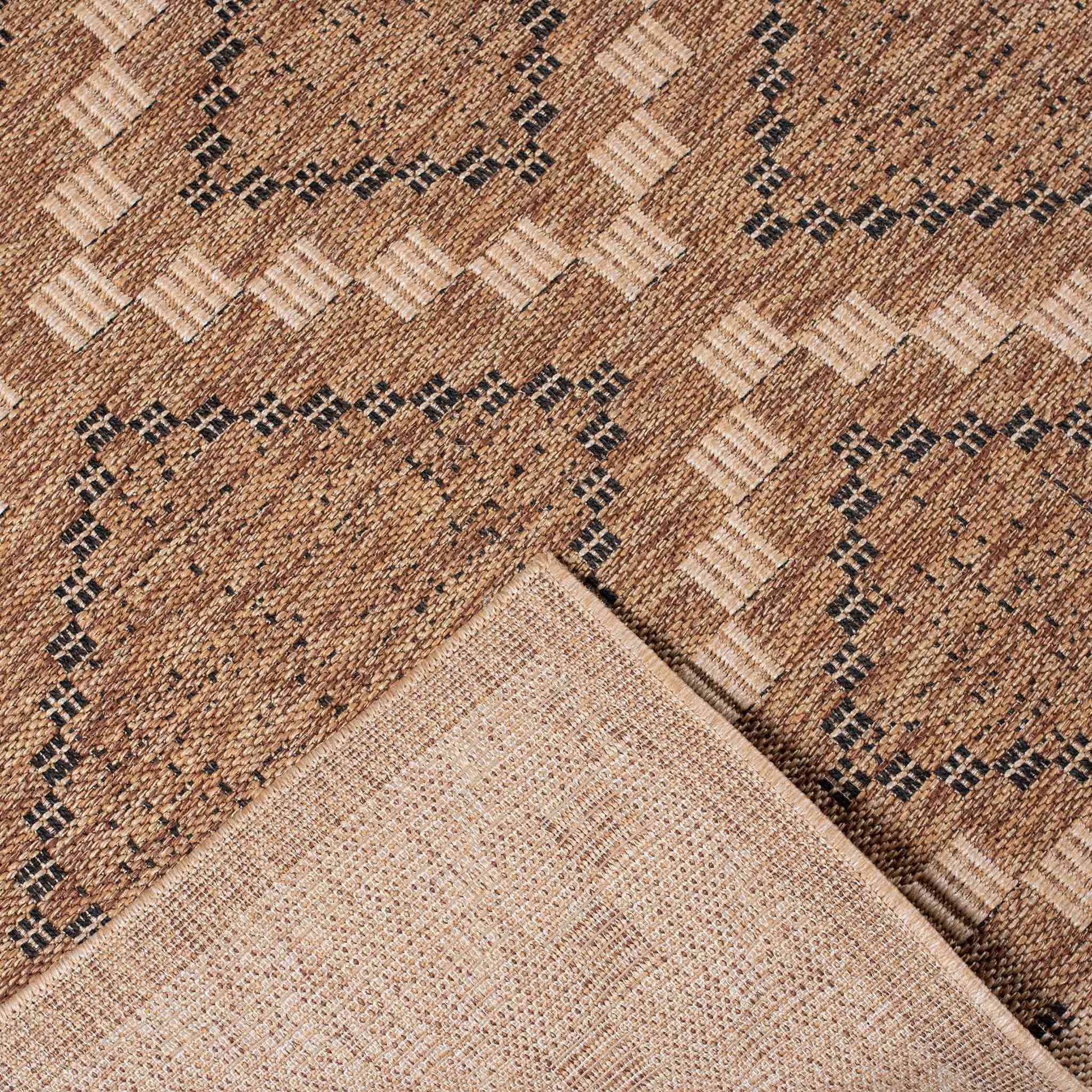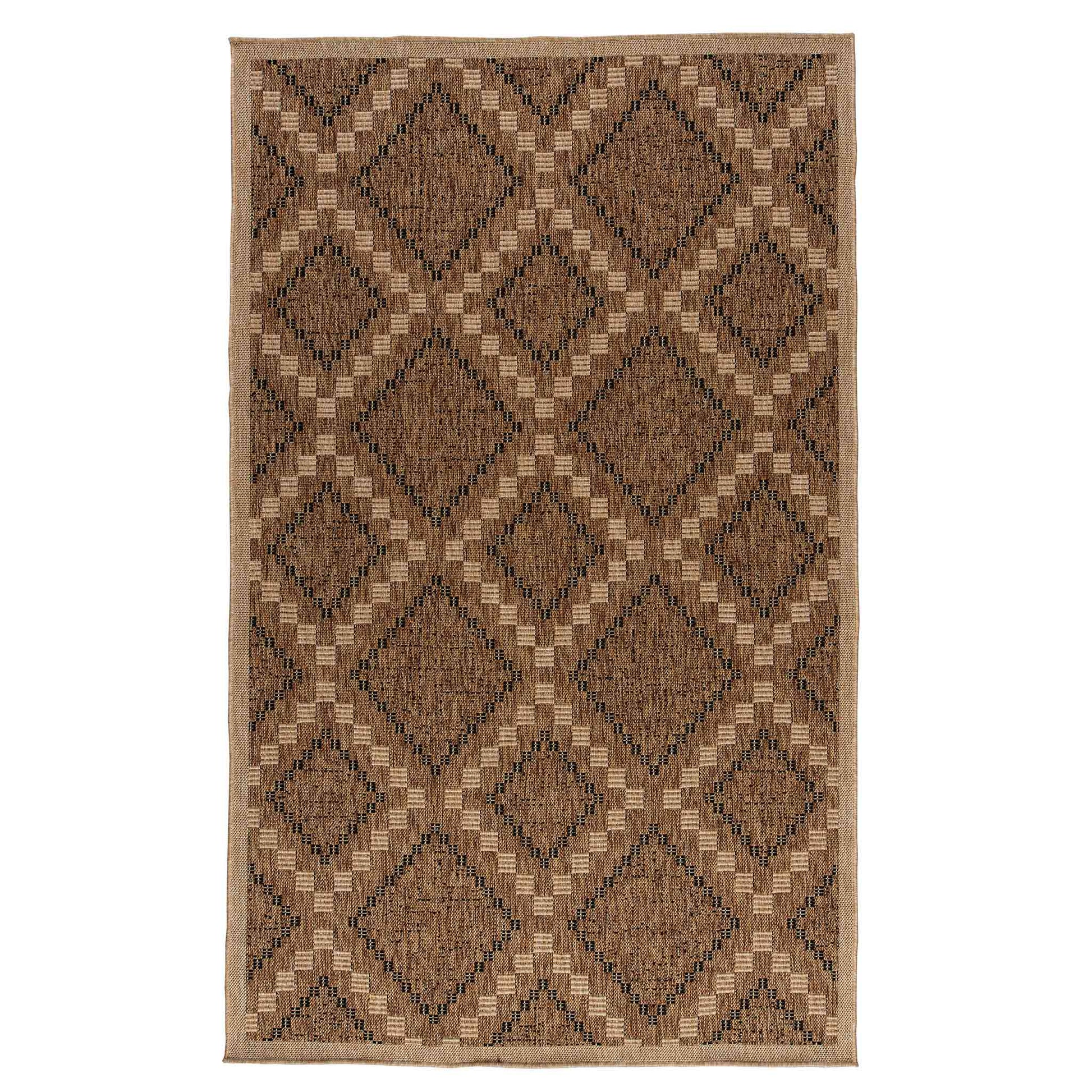 El Tapete Feizy NIZA 2005R presenta un diseño geométrico de inspiración artesanal con una combinación equilibrada de tonos café y arena, ideal para aportar calidez, estructura visual y un estilo natural a espacios interiores y exteriores. Su patrón repetitivo y bien definido permite integrarlo fácilmente en ambientes contemporáneos, rústicos o de inspiración orgánica.