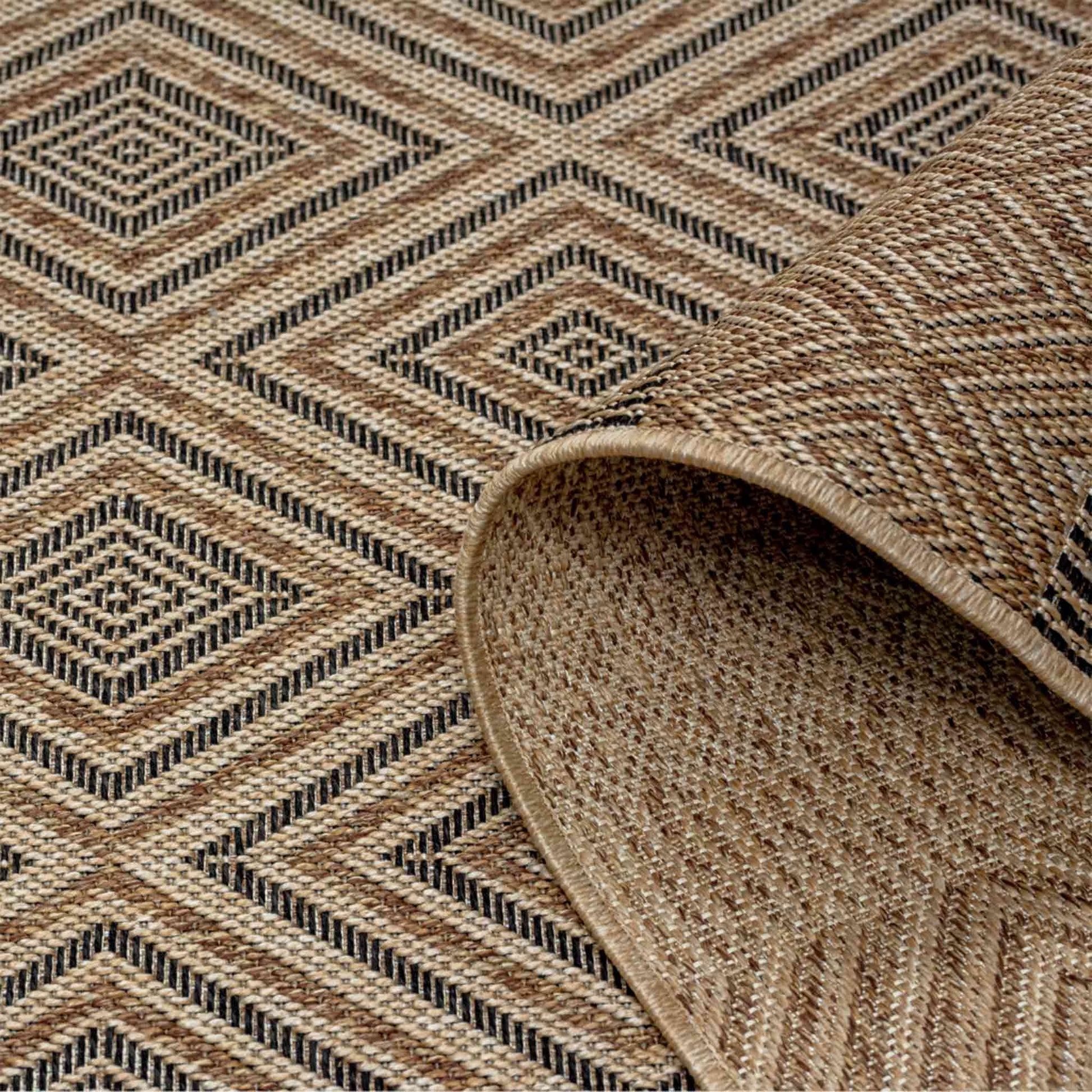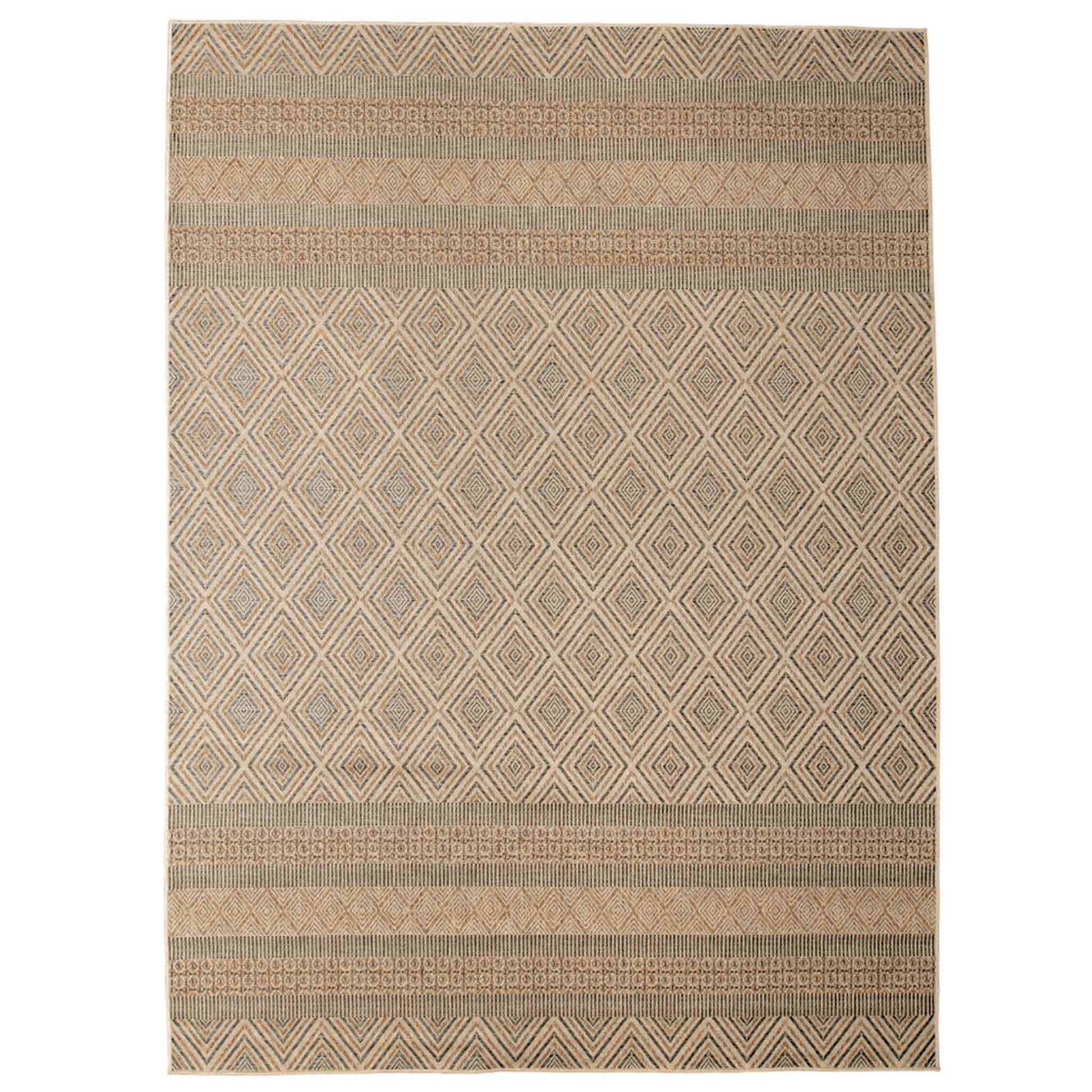 El Tapete Feizy Niza 2016N presenta un diseño geométrico de inspiración artesanal con una paleta cálida en tonos café y arena, ideal para crear ambientes acogedores tanto en interiores como en exteriores. Su patrón estructurado aporta equilibrio visual, textura y carácter sin sobrecargar el espacio.