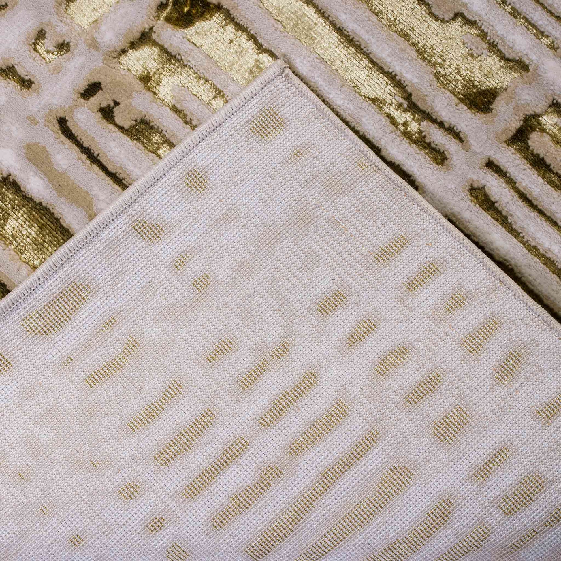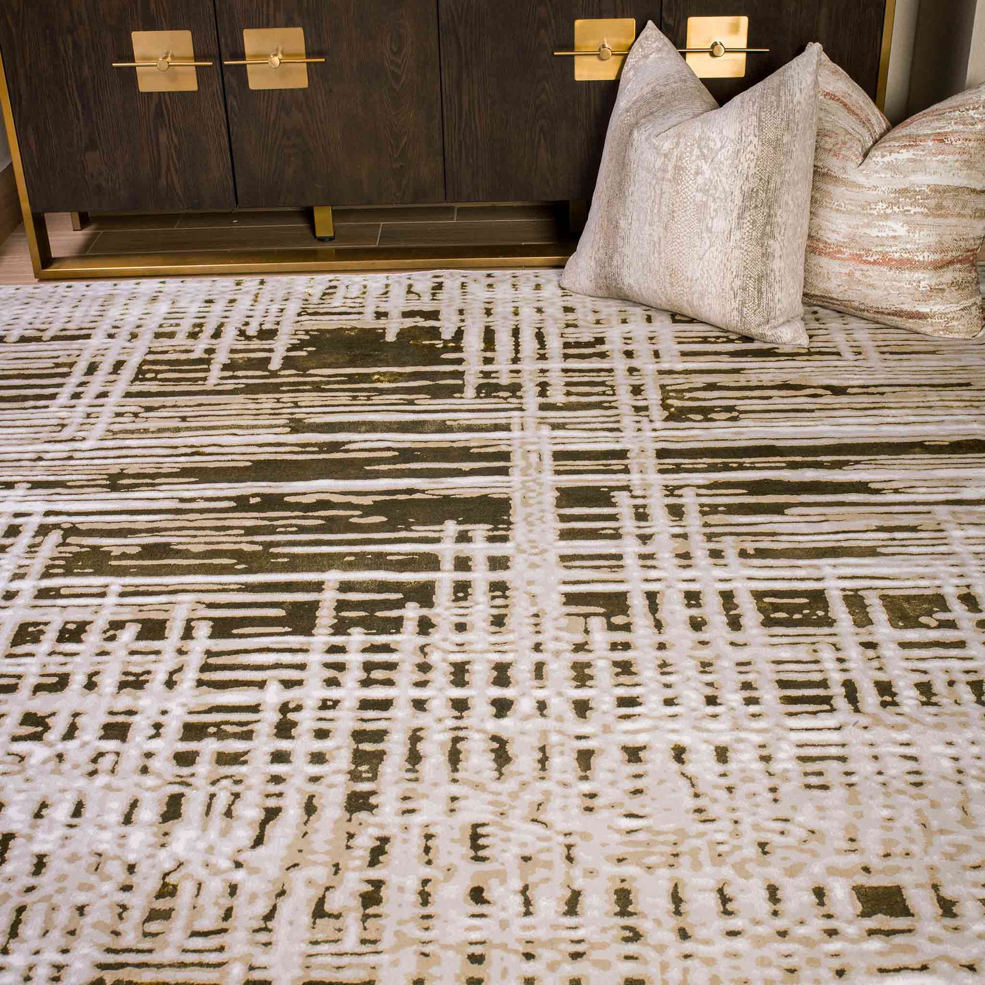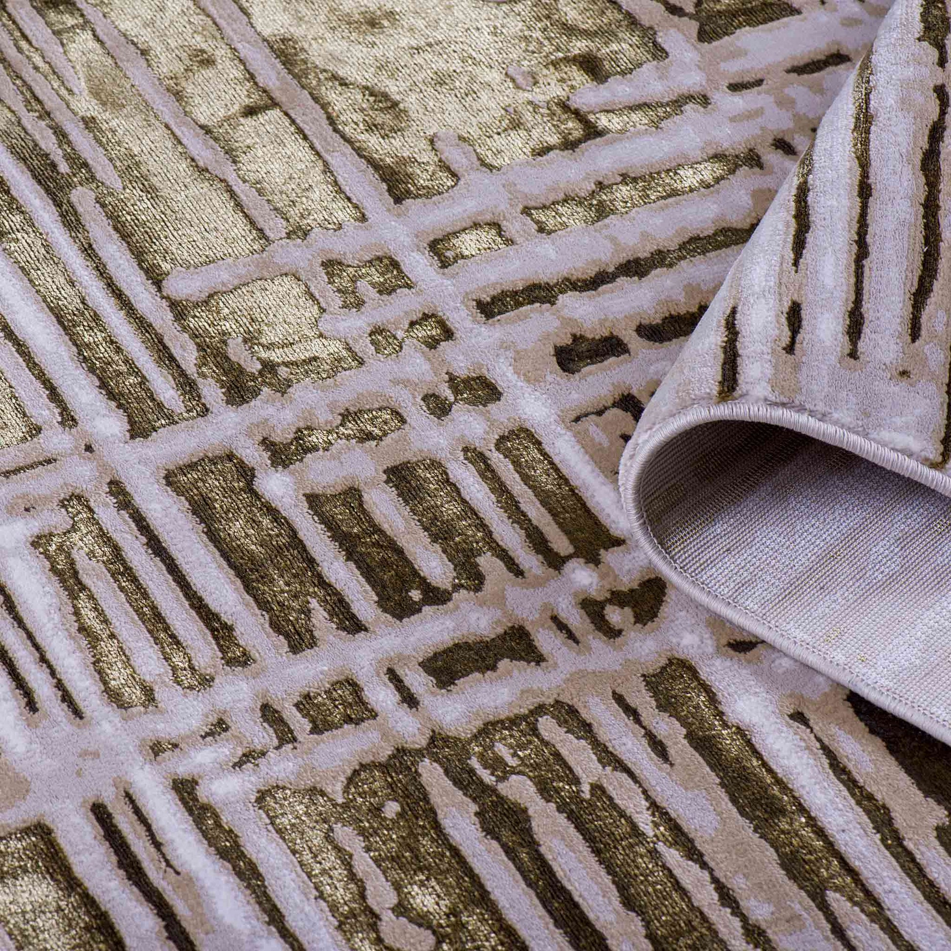 El Tapete Feizy Zuria 1021C presenta un diseño abstracto contemporáneo con acabado metálico elegante en tonos dorado suave y gris profundo. Su composición visual crea contraste y profundidad, aportando carácter y sofisticación sin sobrecargar el espacio.